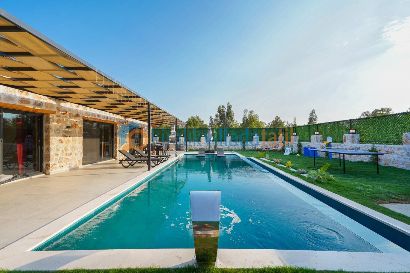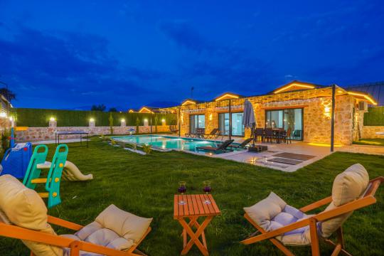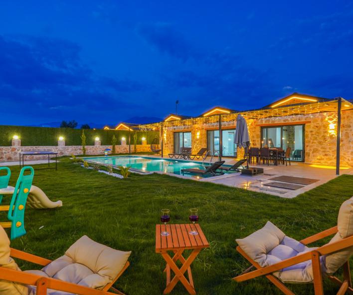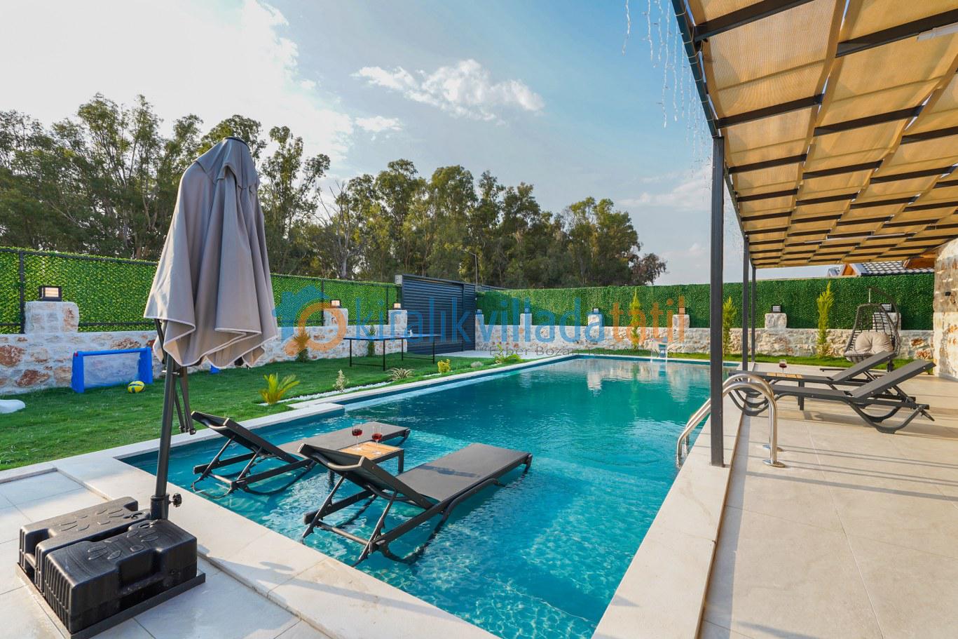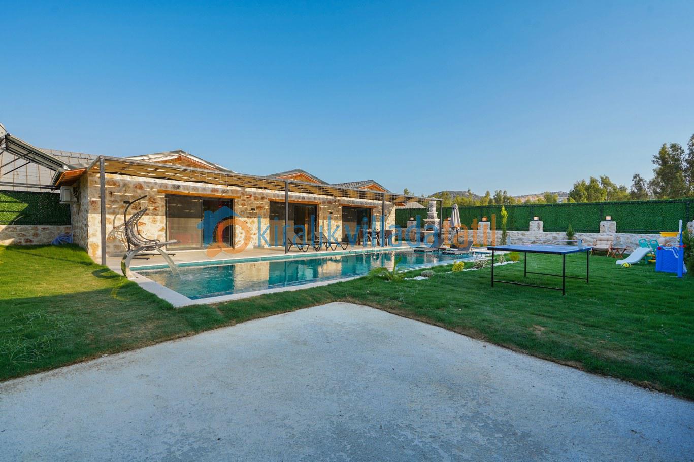 Geniş ve bakımlı bahçe alanı villanın öne çıkan detaylarından biridir. Bahçe içerisinde yer alan salıncak, masa tenisi ve çocuklar için düşünülmüş oyun alanı sayesinde her yaştan misafir için keyifli vakit geçirme imkânı sunulmaktadır. Doğa ile iç içe konumu, ferah atmosferi ve sakin çevresiyle şehir kalabalığından uzak, huzurlu bir tatil ortamı oluşturur.