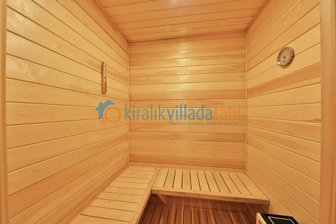 Modern mimarinin doğal ahşap dokuyla birleştiği villanın iç yaşam alanı, konforlu bir lüks villa standardına sahiptir. Villanın içerisinde yer alan sauna ve geniş jakuzi, misafirlerin günün yorgunluğunu keyifle atmasını sağlayan ayrıcalıklı alanlar sunar.