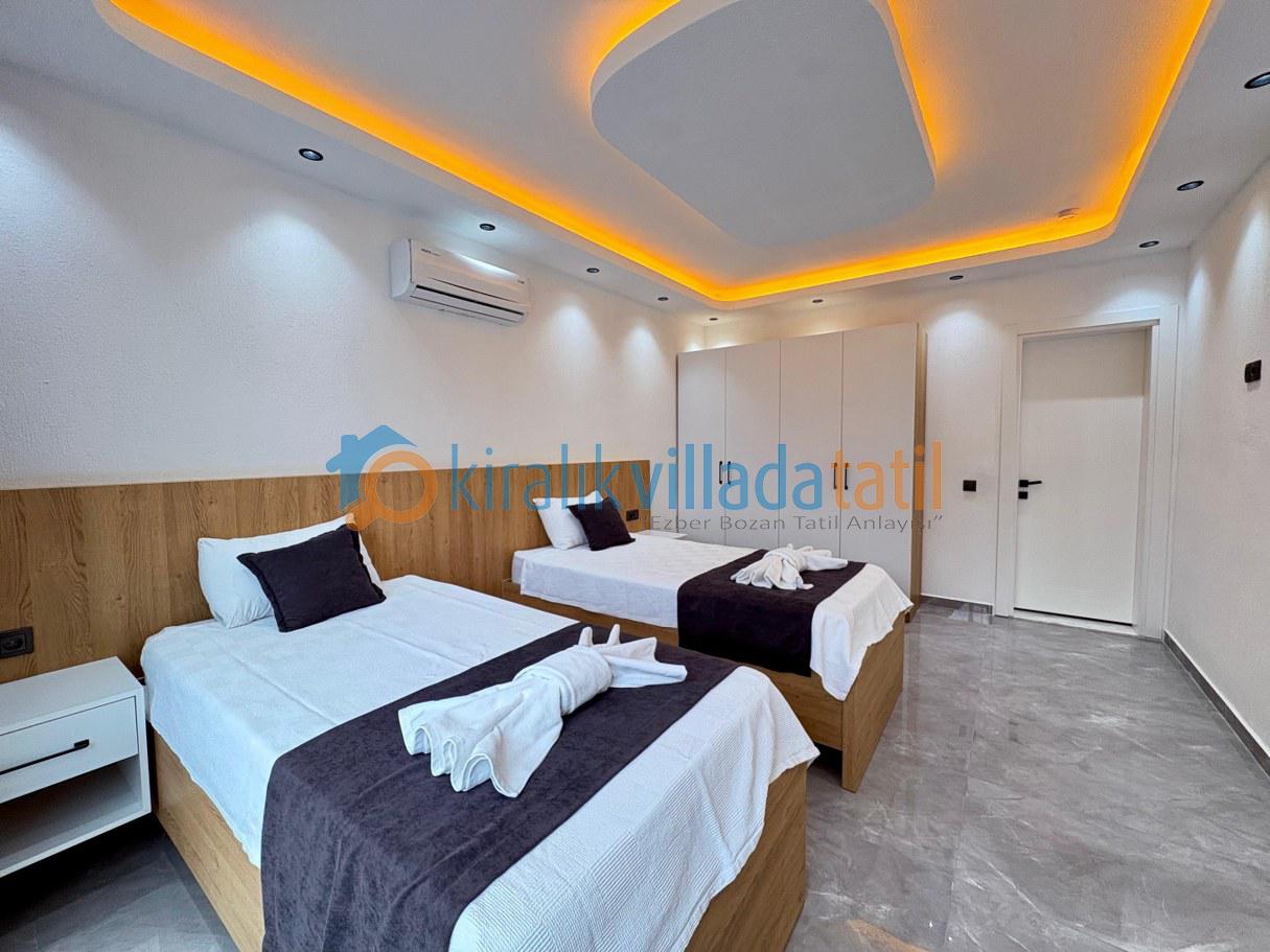 Kiralık Villada Tatil portföyünde öne çıkan bu özel villa, Kalkan–Patara bölgesinin doğal güzellikleriyle çevrili sakin bir konumda yer alır. İki yatak odasıyla toplam 4 kişilik kapasite sunan villa, hem çekirdek ailelerin hem de balayı çiftlerinin aradığı özgürlük, mahremiyet ve konfor beklentisini karşılayacak şekilde özenle tasarlanmıştır.