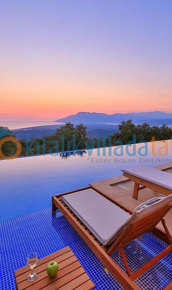 Villamız tek katlı olup geniş alanlara ve özel yüzme havuzuna sahiptir. 13 metrelik havuzu, sığ alanları ve oturma bölümü ile unutulmaz manzaraya karşı keyifli anlar yaşamanızı sağlar. Bahçedeki özel spa havuzunda günün yorgunluğunu atabilirsiniz. Ebeveyn yatak odasında 2 çift kişilik yatak, diğer odalarda ise 2 tek kişilik yatak mevcuttur. Wifi internet bağlantısı ve açık otopark olanakları da villamızda bulunmaktadır.