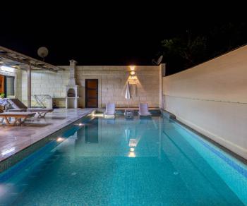 Bu ilan ait Detaylı açıklama ve bilinmesi gereken detaylarÖzenle tasarlanan balayı villamız, büyüleyici Mardin eski evlerinin etkisini yansıtan eskitme taşlar kullanılarak özenle inşa edildi. Bu özel villa, sadece 2 kişi kapasiteli olup balayı çiftlerinin favori tercihlerinden biridir. Havuz terası ise korunaklı bir yapıya sahiptir ve muhafazakar aileler ile balayı çiftlerinin kendilerini rahat hissetmelerini sağlar. Bu özel villada, size tamamen keyifli bir balayı deneyimi sunmak için her ayrıntı düşünüldü.