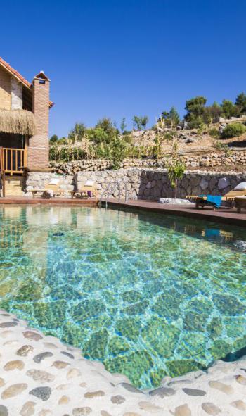 Doğal kaynak suyu kullanılan yüzme havuzu ise hem doğayla uyumlu hem de serinletici bir tatil alanı sunar. Villanın her köşesinde özenle düşünülen küçük detaylar, misafirlere huzurlu ve samimi bir atmosfer sağlar.