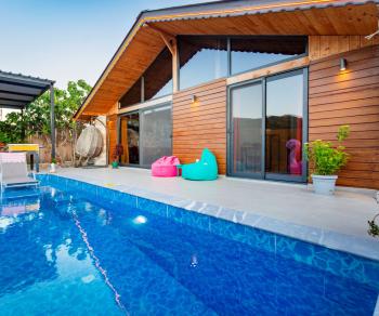 Tamamen korunaklı özel havuzu sayesinde dışarıdan görünmeden özgürce vakit geçirebilir, güneşin keyfini dilediğiniz gibi çıkarabilirsiniz. Villamız, muhafazakâr çiftler için de son derece uygundur. İçerisinde yer alan modern mutfak, konforlu oturma alanı ve romantik detaylarla süslenmiş yatak odasıyla her anınızı özel kılar.
