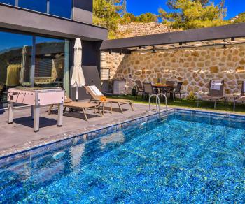 Diğer villalardan ayrılan özelliklere sahip olan tatil villamız, sauna, hamam, jakuzi, ısıtmalı kapalı havuz gibi özel donanımları içerir. Kış aylarında bile konforlu bir konaklama sunan bu balayı villası, ısıtmalı kapalı havuz, sauna ve hamam gibi imkanlarla hizmet vermektedir. Her detayı özenle düşünülmüş bu villa, unutulmaz bir tatil deneyimi yaşamak isteyen konuklarına rüya gibi bir atmosfer sunmaktadır.