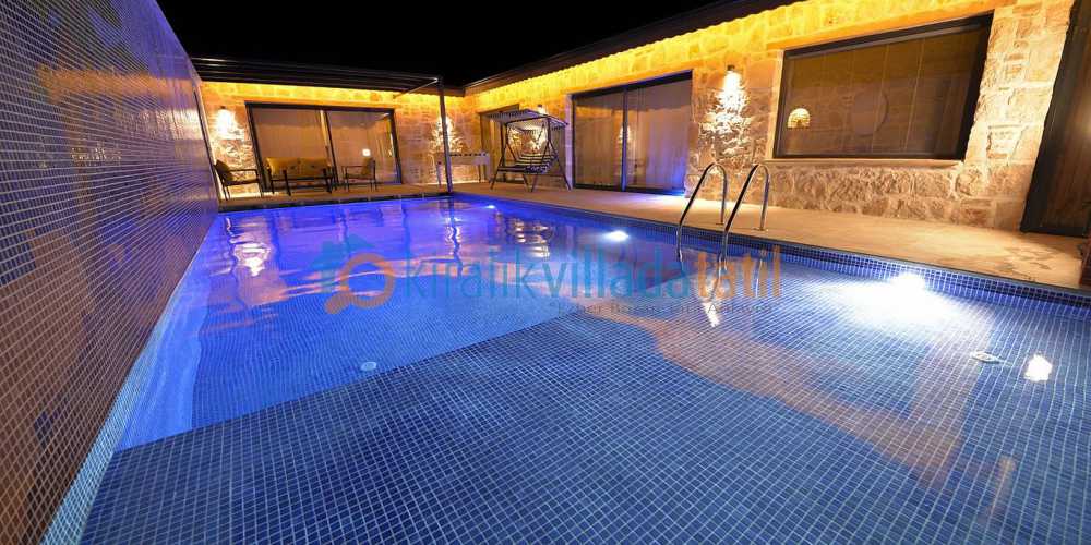 Bu ilan ait Detaylı açıklama ve bilinmesi gereken detaylarKalkan Sarıbelen mevkiinde konumlanan bu kiralık villa 2 yatak odası ve 4 kişilik konaklama kapasitesi ile doğa içinde huzurlu bir tatil arayan misafirler için hazırlanmıştır. Taş mimarisi ile modern detayların bir araya geldiği yapı, he estetik hem de konforlu bir kullanım sunar. Özellikle mahremiyete önem veren misafirler için tasarlanan havuz alanı dışarıdan görünmeyecek şekilde planlanmış olup tam anlamıyla korunaklı villa konseptindedir. Bu özelliği sayesinde muhafazakar villa arayışında olan aileler ve balayı çiftleri gönül rahatlığıyla tercih edebilir.