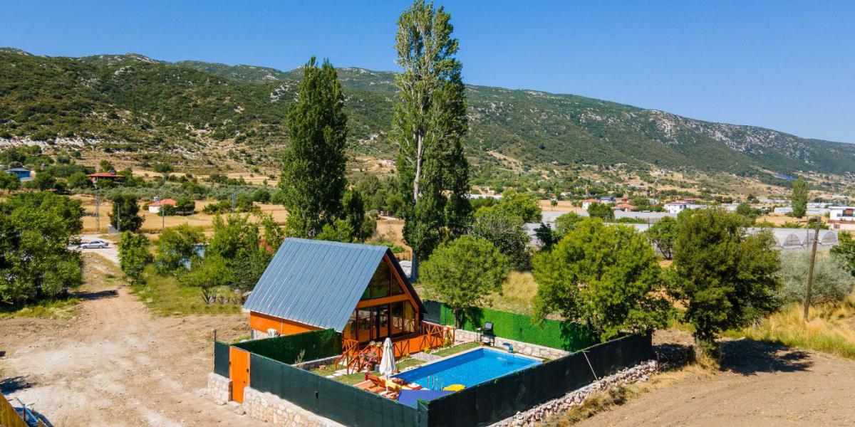 Villanın mimarisi, üçgen bungalov tarzında tasarlanmış olup, bulunduğu doğal çevreyle uyumlu estetik bir görünüm sunar. Şık ve fonksiyonel iç mekân tasarımı sayesinde konforlu bir konaklama deneyimi sağlanır. Havuz terası, gün boyu rahatça kullanılabilecek şekilde planlanmış olup, hem güneşlenme hem de dinlenme alanlarıyla dikkat çeker.