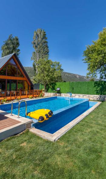 Bu ilan ait Detaylı açıklama ve bilinmesi gereken detaylarVillamız Kalkan Sarıbelen bölgesinde yer alan, 4 kişilik kapasiteli harika bir tatil villasıdır. Doğa içinde konumlanan villamız, geniş bir özel bahçe ve özel havuz sunmaktadır. Korunaklı yapısıyla, muhafazakar aileler için mükemmel bir seçenektir. Şık ve konforlu bir tatil deneyimi sunan villamızda 2 adet yatak odası bulunmaktadır.Villamız havuz terasının konforu ile dikkat çekmektedir.