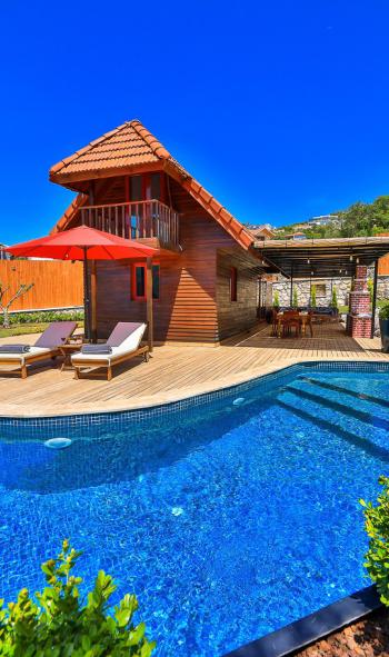 Bu ilan ait Detaylı açıklama ve bilinmesi gereken detaylarKalkan'ın Sarıbelen mevkiinde doğa ile iç içe bir tatil deneyimi için ideal olan 3 yatak odalı ahşap tarzı villa sizleri bekliyor. Villamız, bahçeli ve özel havuzlu bir konaklama seçeneği sunmaktadır. Villamızın içi sıcak ve samimi bir atmosfere sahiptir. 5 kişilik konaklama kapasitesine sahip olan villamız, tüm ihtiyaçlarınızı karşılamak için modern ekipmanlarla donatılmıştır. Konforlu bir salon, tam donanımlı mutfak, yemek alanı ve üç adet yatak odası bulunmaktadır. Her odada rahat bir uyku çekebilmeniz için lüks yataklar mevcuttur. Villamızın dışında, doğanın tadını çıkarabileceğiniz bir bahçe ve havuz mevcuttur. Havuz terası, güneşlenmek veya yüzmenin yanı sıra açık havada yemek yemek için de ideal bir yerdir. Villanın bulunduğu bölge, Kalkan'ın merkezinden uzakta sessiz ve huzurlu bir ortam sunar.