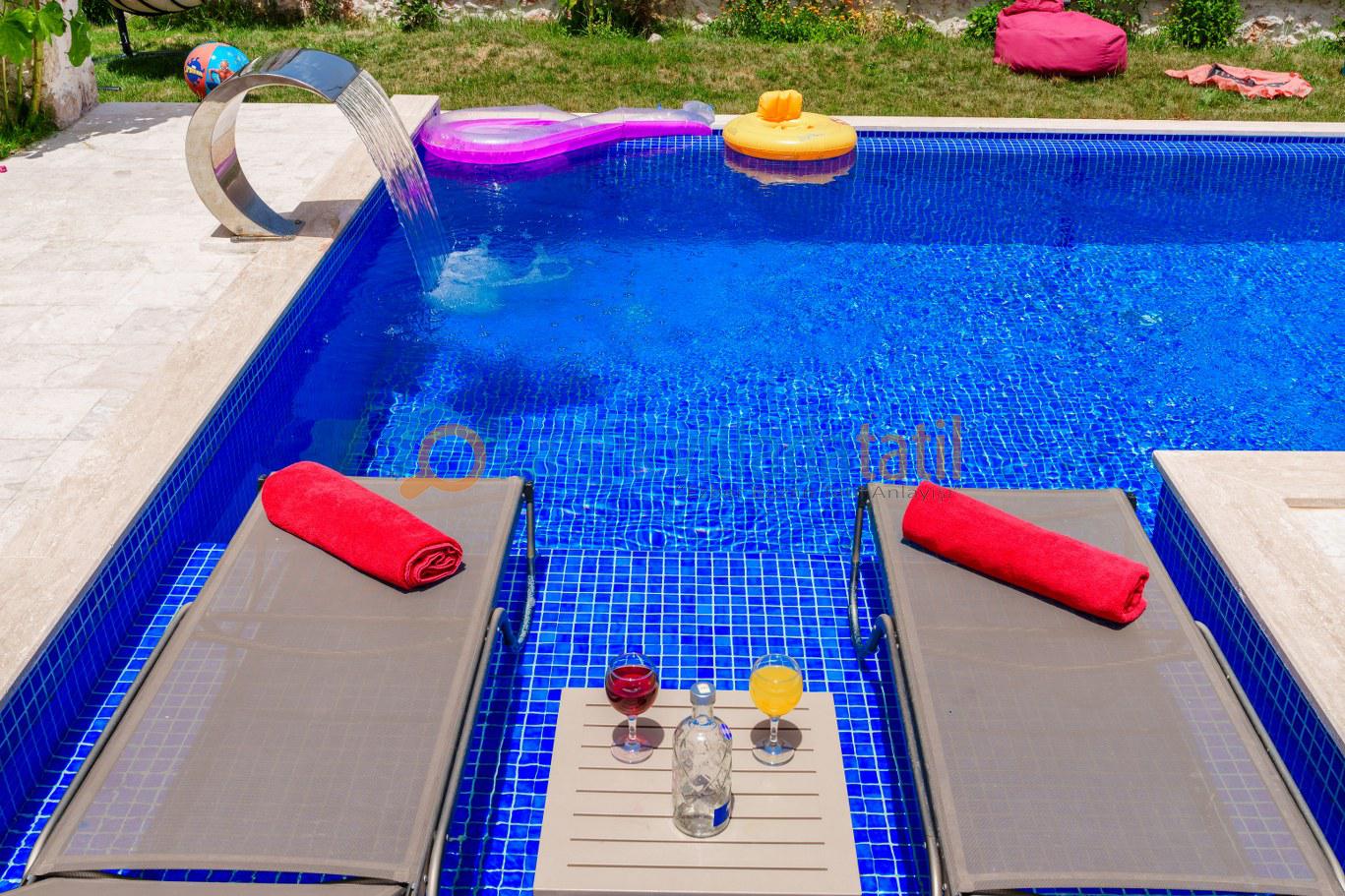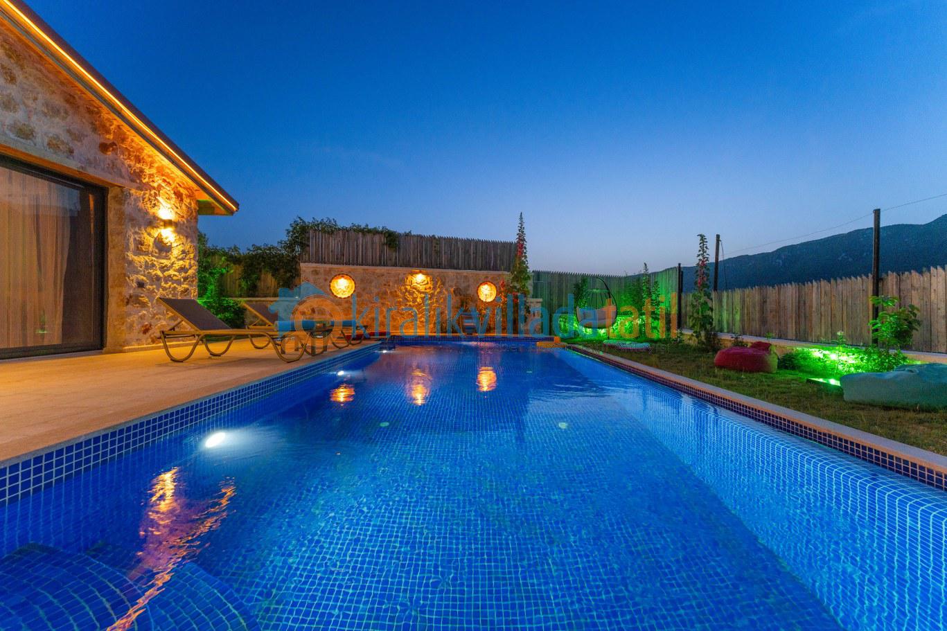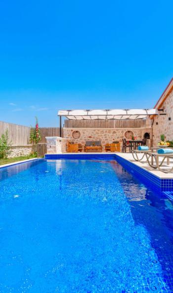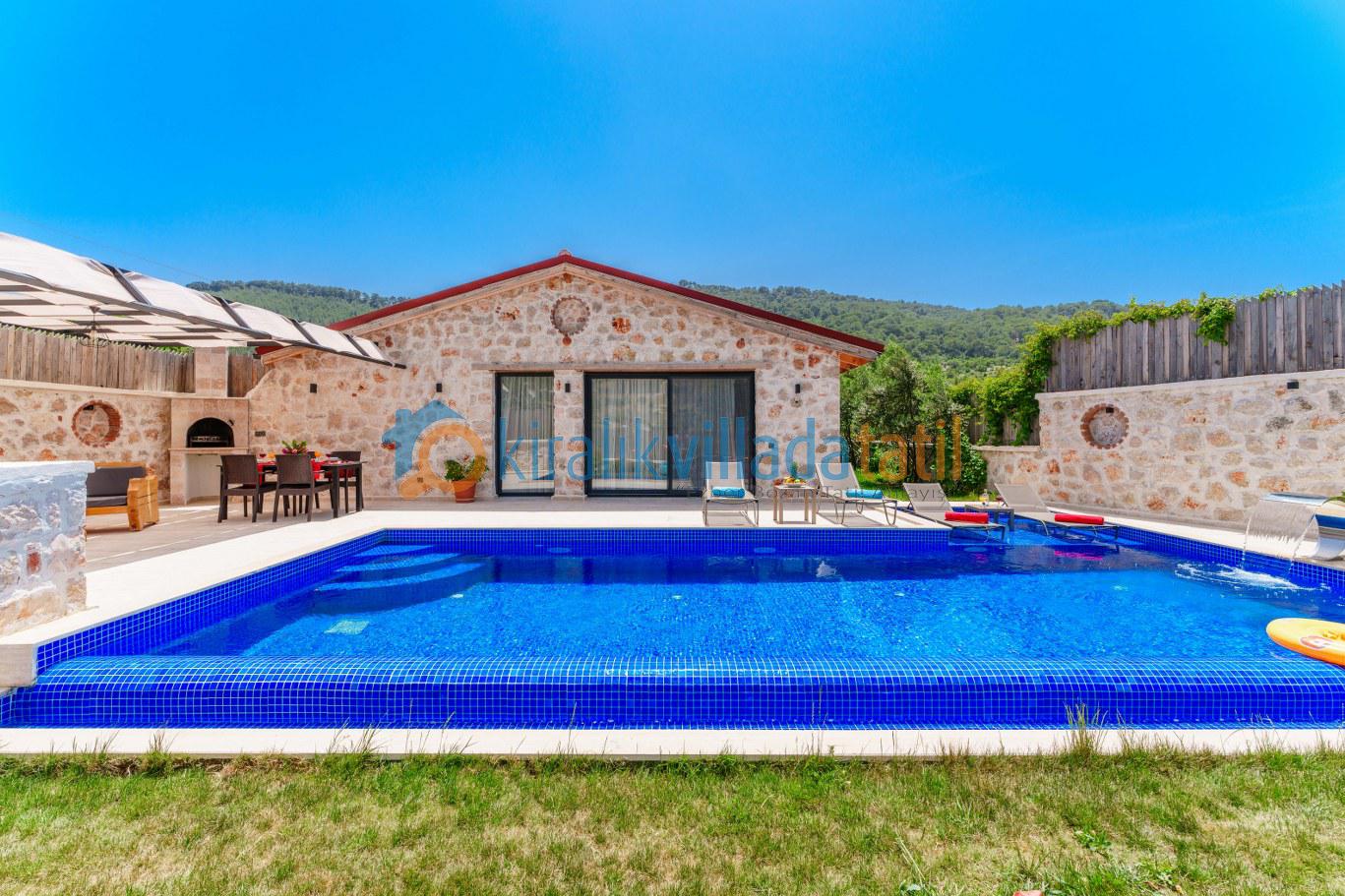 Havuz ve havuz terası korunaklı olan villamız, mahremiyetine önem veren çekirdek aileler ve arkadaş grupları için ideal bir villadır. Havuz önündeki perdeleme ile, iser perdeyi kapatıp, havuzunuzu tamamen korunaklı hale getirebilir, dilerseniz de açık bırakıp doğa manzarasının tadını yaşabilirsiniz.