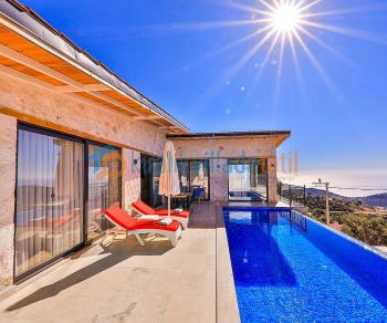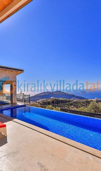 Konumu itibari ile Akdenizin incisi Kalkan koyu manzarasına sahip villamız her sabah uyandığınızda bu güzel manzarayı her odanızdan sizlere sunmaktadır. Şehir merkezine yaklaşık 5 km mesafede olan villamızın havuz terası etrafı demir pergula ile kapatılarak korunaklı hale getirilmiştir. Villamızda ana yatak odasında bulunan kapalı havuz ve jakuzi olması kış dönemlerinde de balayı çiftlerimize ve müşterilerimize keyifli bir tatil sunma olanığı sağlar.