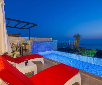 Konumu itibari ile Akdenizin incisi Kalkan koyu manzarasına sahip villamız her sabah uyandığınızda bu güzel manzarayı her odanızdan sizlere sunmaktadır. Şehir merkezine yaklaşık 5 km mesafede olan villamızın havuz terası etrafı demir pergula ile kapatılarak muhafazakar hale getirilmiştir. Villamızda ana yatak odasında bulunan kapalı havuz ve jakuzi olması kış dönemlerinde de balayı çiftlerimize ve müşterilerimize keyifli bir tatil sunma olanığı sağlar.