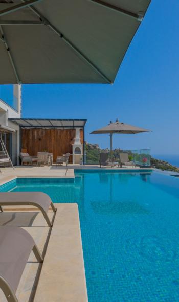 Bu ilan ait Detaylı açıklama ve bilinmesi gereken detaylarKalkan Sarnıçbaşında bulunan villamız, 6 kişilik kapasiteye sahip olup önü açık deniz manzarasına sahiptir. Sonsuzluk havuzuna sahip olan villamız, muhteşem deniz manzarası eşliğinde misafirlerine unutulmaz bir tatil sunmaktadır. Geniş havuzu ile tatiliniz daha da güzel geçecektir. Havuz ve havuz terası büyük oranla dış gözlerden uzak olan villamız, muhafazakar aileler ve arkadaş grupları için ideal bir villadır.