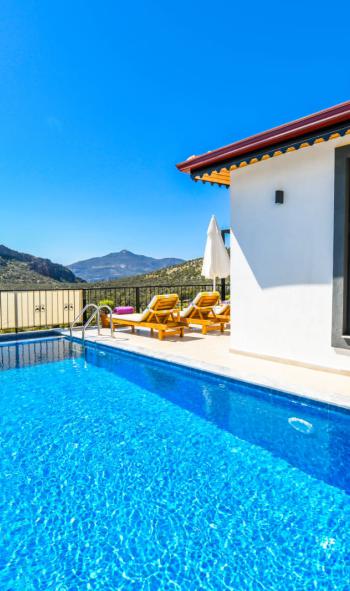 Bu ilan ait Detaylı açıklama ve bilinmesi gereken detaylarTatil Villamız Kalkan Ulugöl mevkiinde yer almaktadır. Villamız 2 yatak odalı 4 kişiliktir. Villamız konumu ile doğa içerisindedir. Villamızın süit yatak odasında jakuzi bulunmaktadır. Villamızın havuz terasında salıncak ve langırt bulunmakta olup eğlenceli bir tatil için sizlere kapılarını aralamaktadır. Villamızın havuzu korunaklı halde olup muhafazakar villa seçeneklerimizden bir tanesidir.