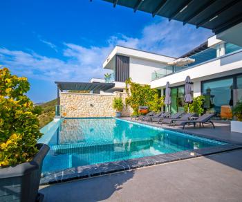 Villamızın yan tarafında bulunan KAV1870 Kodlu villamızda bir birinden bağımsı aynı modernlik ve dizayn da ikiz villasıdır birbirlerine yakın konumda tatil yapmak isteyen ailelerimiz içinde her iki villamız aynı tarihte müsait olduğunda bir seçenektir.