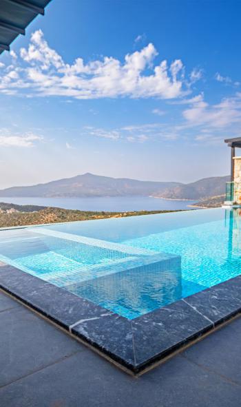 10 mt x 4 mt 1.50 cm ebatlarında hidromasaj sistemli havuzu ve havuz terası ile ferah bir ortam sunan villamız kalkan koyu manzarasına da sahiptir.Modern mimari ile inşa edilen villamız sizlere unutamayacağınız bir tatil imkanız sunmaktadır.