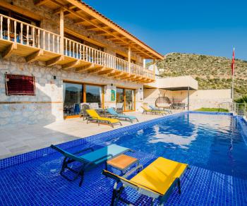 Villamızda 3 yatak odası bulunmakta olup, birinci ve ikinci yatak odaları çift kişilik yatak, klima, jakuzi, komodin, elbise dolabı, makyaj masası, TV, banyo ve tuvalet ile donatılmıştır. Üçüncü yatak odasında ise 2 adet kişilik yatak, klima, komodin, elbise dolabı, makyaj masası, TV, banyo ve tuvalet mevcuttur. Villamızın salonunda konforlu oturma grubu, klima, TV, internet, uydu alıcı, yemek masası ve sehpa bulunmaktadır. Mutfakta ise buzdolabı, bulaşık makinesi, çamaşır makinesi, 4'lü ocak, kettle ve yemek takımı mevcuttur. Villamızın havuzu ve bahçesi korunaklıdır ve dışarıdan görünmemektedir. Havuzumuz özel yüzme havuzu olup, bahçemizde ayrıca salıncak, langırt, masa tenisi, şezlong, şemsiye, yemek masası ve barbekü bulunmaktadır. Villamız haftada bir defa temizlenmektedir ve size temiz teslim edilir. Ekstra temizlik talep etmeniz durumunda, ücret karşılığında yeni çarşaf, yastık kılıfı vb. sağlayabiliriz. Villaya girişte 2500 TL depozito alınmakta olup, herhangi bir hasar, kırık dökük veya kayıp gibi problemler olmadığı takdirde, villadan ayrılırken depozito size iade edilir. Lütfen unutmayın ki, tüm villalarımızda giriş saati öğleden sonra 16:00, çıkış saati ise sabah 10:00'dır. Bu saatlere riayet etmeniz önemlidir. Ayrıca, Kalkan ve çevresindeki köylerde bulunan tüm yazlıklarımıza ulaşmak için yokuş yukarı çıkılması gerekt