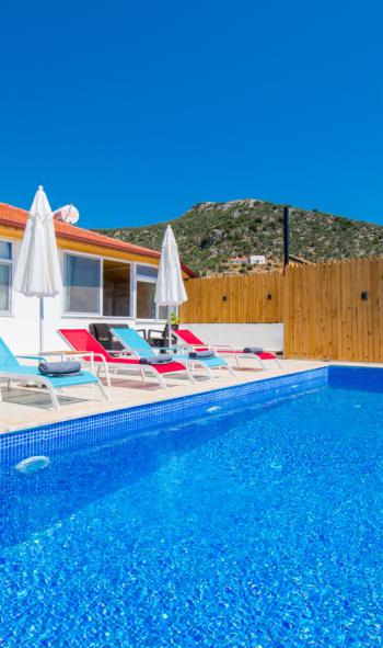 Villamız içinde ihtiyacınız olan tüm mobilya mutfak araç gereçleri ütü saç kurutma makinesine kadar mevcuttur.Villamız kalkan merkeze çok uzak olmayan konumdadır balayı çiftlerimiz içinde ideal villalardan biridir.Villamız etraftan görünürlüğü engellendiğinden dolayı muhafazakar ailellerimiz içinde ideal bir villadır.