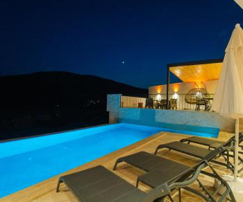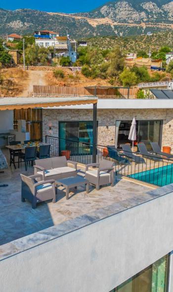 Özellikle çocuklu aileler için düşünülmüş olan sığ havuzuyla ön plana çıkan bu villa, hem yetişkinler hem de çocuklar için konforlu ve keyifli bir tatil deneyimi vadetmektedir. Tamamen müstakil olan villamız, Kalkan merkeze oldukça yakın bir konumda yer almakta olup, araçla kolayca ulaşılabilmektedir. Böylece hem şehrin olanaklarına hızlı erişim sağlarken hem de sakin ve huzurlu bir ortamda tatilinizi geçirme fırsatı sunmaktadır.