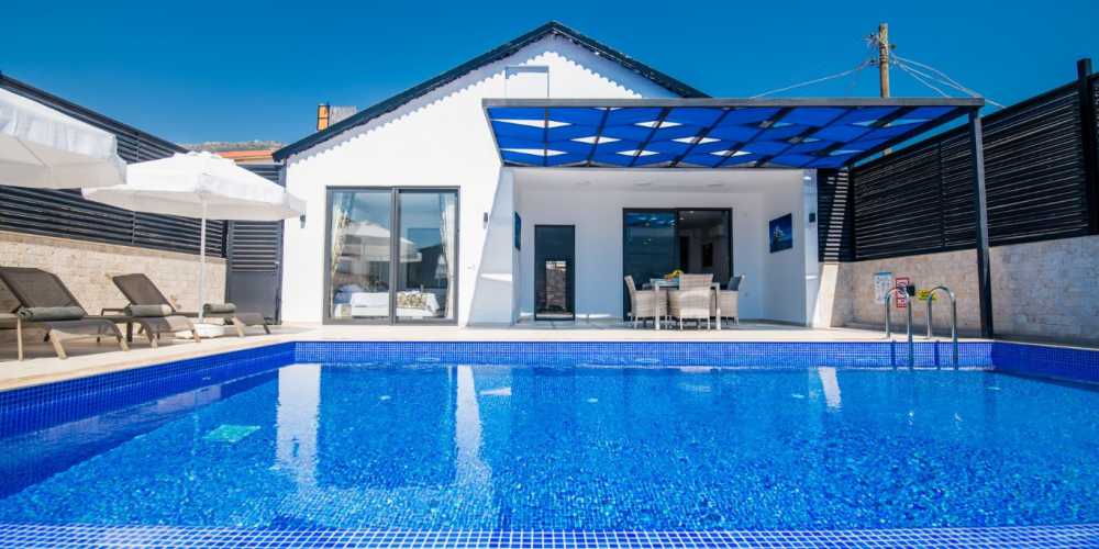 Villamızın yüzme havuzu dışarıdan görünmeyecek şekilde korunaklıdır. Size özel muhafazakar yüzme havuzu şezlonglar ve şemsiye ile birlikte huzurlu ve keyifli bir havuz deneyimi sunar. Ayrıca çocuk havuzu bulunması aileler için ekstra bir avantaj sağlar.