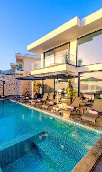 Bu ilan ait Detaylı açıklama ve bilinmesi gereken detaylarKalkan Ulugöl bölgesinde bulunan villamız, 6 kişilik kapasiteye sahiptir. Modern ve lüks bir yapıya sahip olan villamızın aynı zamanda ev eşyaları da modern ve lüks olarak özenle seçilmiştir. Muhteşem bir deniz manzarasına sahip olan villa, sonsuzluk havuzu ile gerek deniz manzaranızı gerekse gün batımı seyrinize zevk katacaktır. Aynı zamanda, jakuzi özellikli küçük bir havuzu da bulunan villa, yetişkinler için jakuzi keyfi yaşatırken, küçük misafirlerimiz için de çocuk havuzu konsepti olarak kullanılabilir.