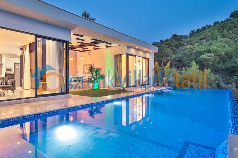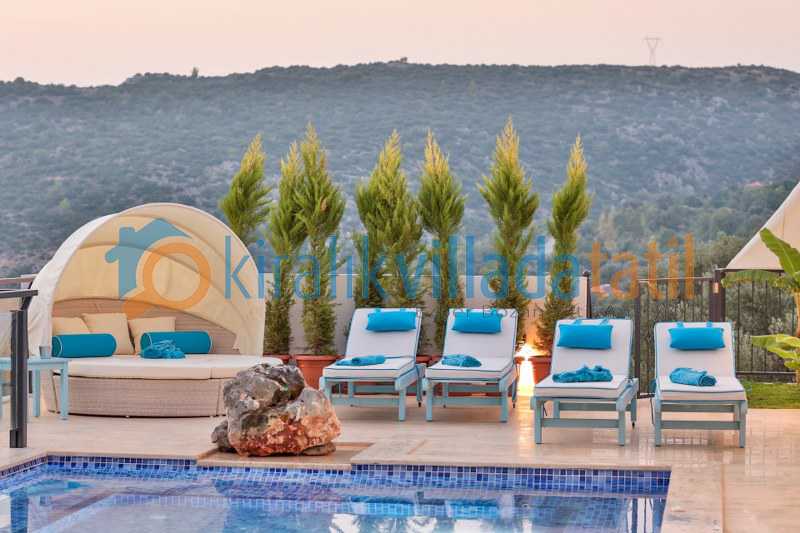 Villanın en dikkat çeken özelliklerinden biri korunaklı sonsuzluk havuzudur. Dışarıdan görünmeyen havuz alanı sayesinde misafirler gün boyunca mahremiyet içinde vakit geçirebilir. Özellikle gün batımı saatlerinde sonsuzluk havuzunun sunduğu manzara tatile ayrı bir huzur katar.