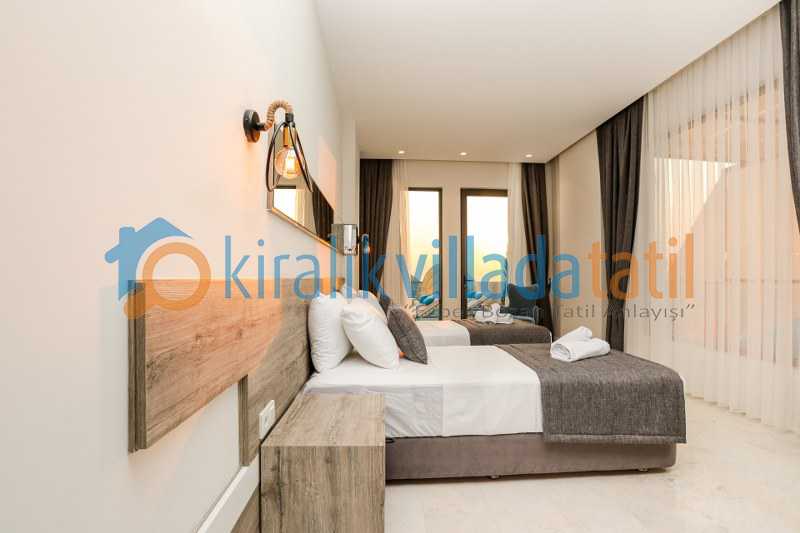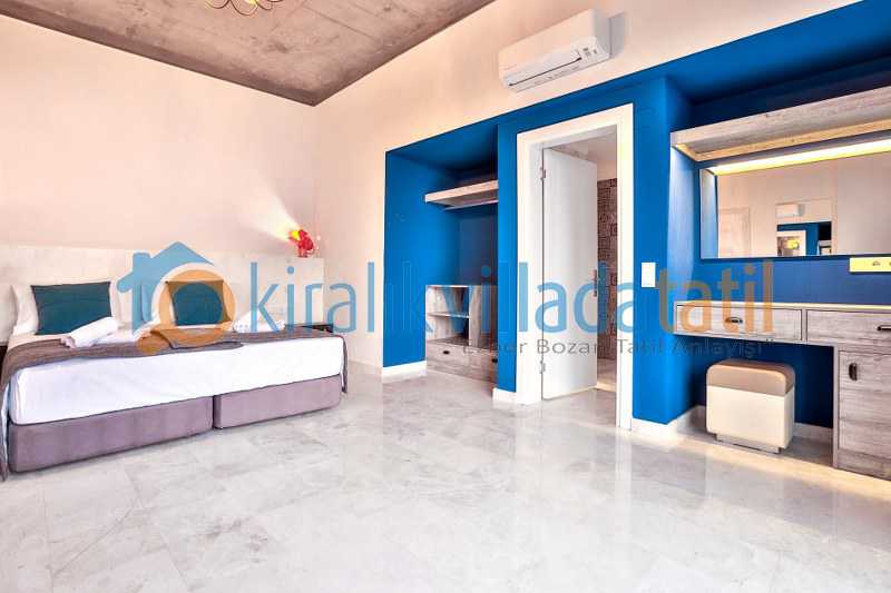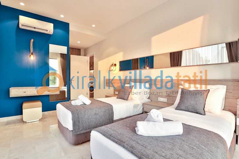 6 kişi kapasiteli olan villamız geniş aileler ve arkadaş grupları için uygundur. Ferah ve kullanışlı odaları sayesinde her misafir kendine ait rahat bir alan bulabilir. Villada yer alan jakuzi tatil keyfini daha özel hale getirirken tekli yatakların birleştirilebilir olması da farklı konaklama ihtiyaçlarına esnek çözüm sağlar.