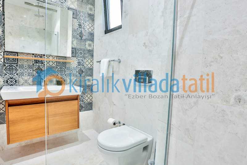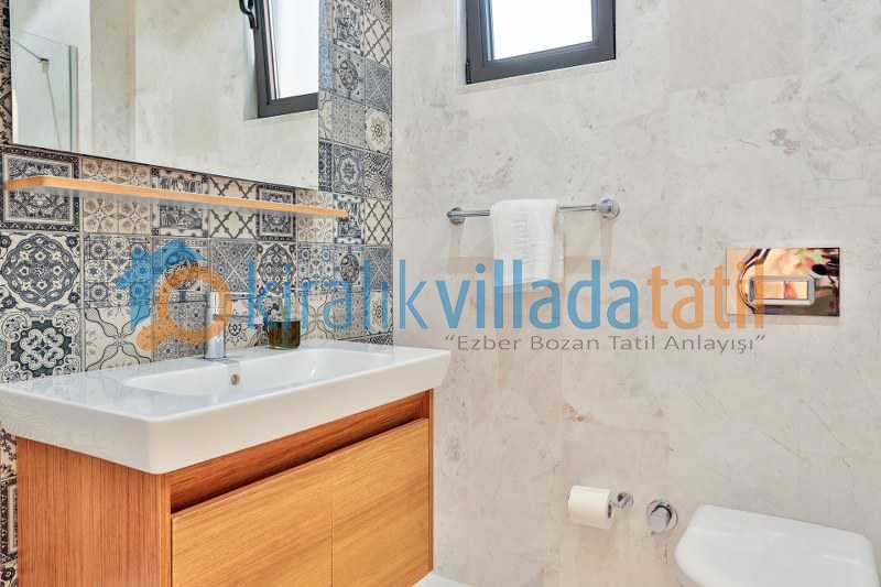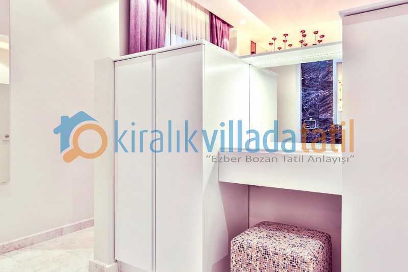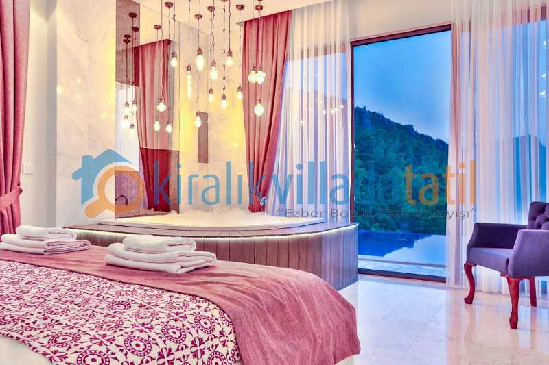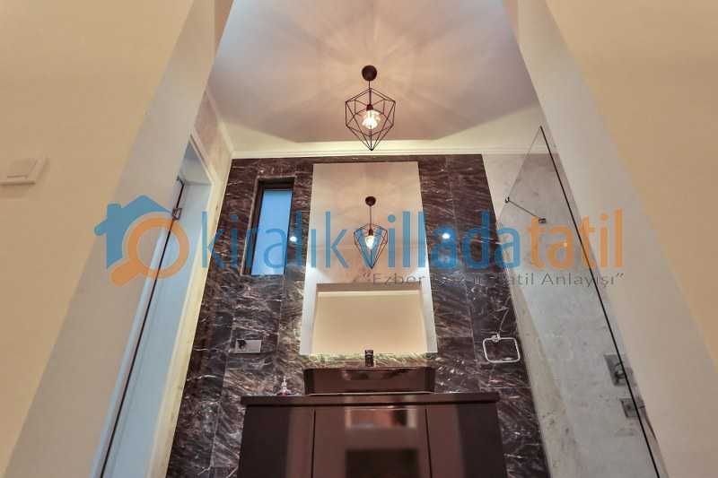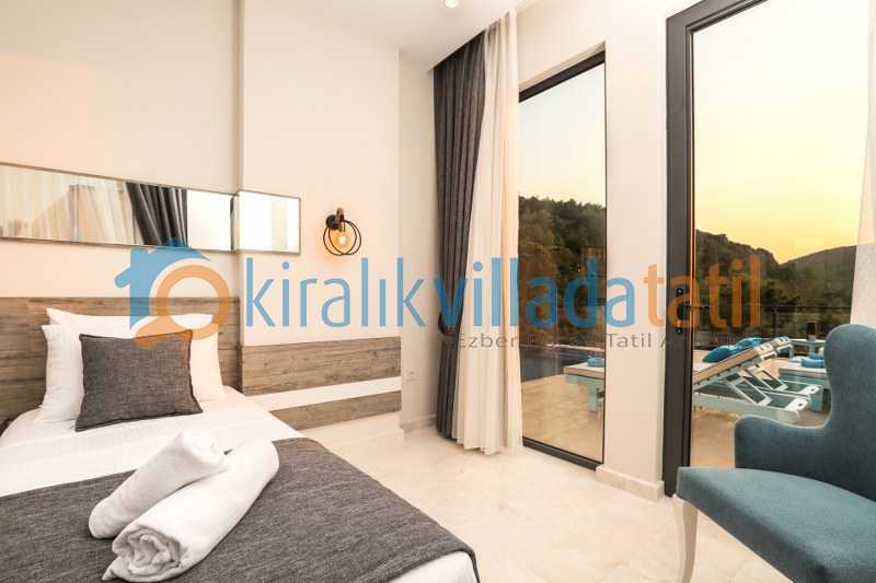 Villanın bir yatak odasına havuz alanından alt kata inilerek giriş yapılmaktadır. Bu detay farklı kullanım tercihleri için avantaj sunar. Ayrıca açık otopark imkanı araçla gelen misafirler için pratik bir kullanım sağlar.