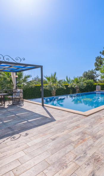 Havuz terası tam korunaklı olup sabah doğa içinde ve kuş sesleri'nin verdiği mutlulukla uyanacaksınızdır. 2 Yatak odasından oluşan villamız alt katında bir oda salon ve açık mutfak bulunmaktadır ana yatak odamız üst katta olup açık girişe sahiptir. Balayaı çiftlerimiz içinde iadeal bir seçenek olan villamızda konforunuz için herşey düşünülmüştür.