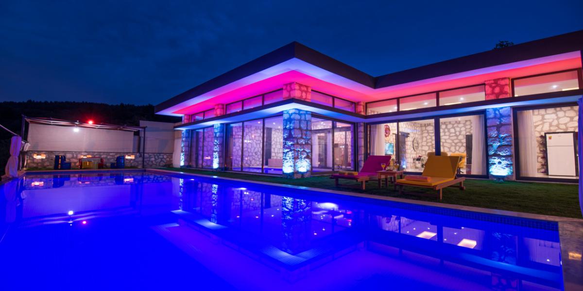 Villanın dış alanı tamamen korunaklı olacak şekilde planlanmıştır. Dışarıdan görünmeyen havuz terası sayesinde muhafazakâr kullanım için uygun bir yapı sunar. Balayı çiftleri gün boyunca gözlerden uzak şekilde yüzebilir, güneşlenebilir ve akşam saatlerinde özel alanlarında keyifli vakit geçirebilir.
