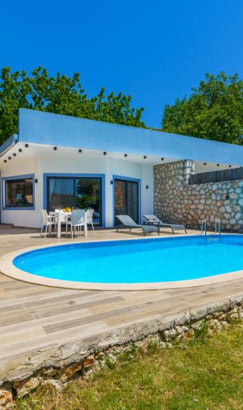 Villanın özel yüzme havuzu, sıcak yaz günlerinde serinlemeniz için mükemmel bir olanak sunar. Havuzun çevresindeki şezlonglar, güneşlenmek ve dinlenmek için idealdir. Ayrıca, villanın geniş terasında akşamüstü çayınızı ya da kahvenizi yudumlayabilir, gün batımının keyfini çıkarabilirsiniz. Doğa manzarası eşliğinde romantik akşam yemekleri için de teras mükemmel bir ortam sunar.