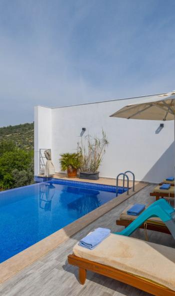 Bu özel villamız, konfor ve huzurun yanı sıra evinizin sıcaklığını aratmayacak bir atmosfer sunar. Özellikle balayı çiftleri için ideal bir seçenek olan villamız, Kalkan'daki diğer kiralık villalardan farkını hissettirir.