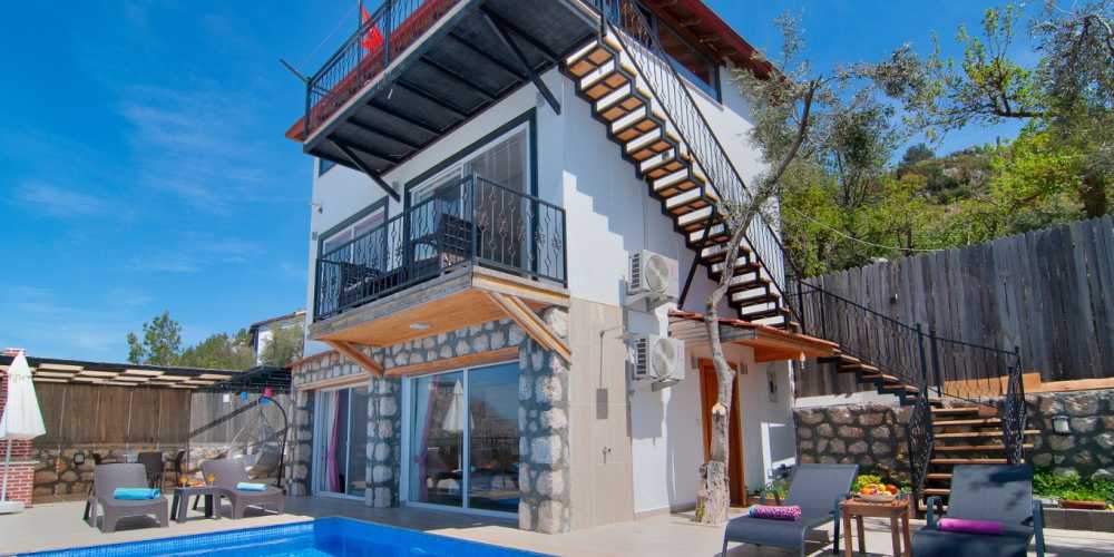 Doğanın ortasında yer alan villa, korunaklı havuz alanı ve huzur veren manzarasıyla keyifli bir tatilin kapılarını aralar. Deniz manzarasının eşlik ettiği geniş teras, güne gün doğumuyla başlamak ya da akşam saatlerinde dinlenmek için mükemmel bir ortam sunar. Kalkan merkezdeki popüler plajlara, restoranlara ve gezilecek tarihi alanlara ise kısa sürüş mesafesinde ulaşabilirsiniz. Böylece hem sakinliği hem de bölgenin tüm güzelliklerini aynı anda yaşama fırsatı elde edersiniz.