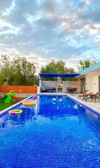 Ayrıca, terasımızda barbekü yaparak, sevdiklerinizle birlikte unutulmaz anılar biriktirebilirsiniz. Kendi özel yüzme havuzumuz, sizi serinletirken, doğanın içinde harika bir tatil deneyimi yaşamanızı sağlayacak. Villamız, muhafazakar tatil yapmak isteyen misafirlerimiz için ideal bir seçenektir. Konakladığınız süre boyunca, huzurlu ve keyifli bir tatil deneyimi yaşayacaksınız. . Havuz ve bahçe bakımı, düzenli olarak görevlilerimiz tarafından yapılmaktadır. Villa size temiz olarak teslim edilecek ve haftada bir kez temizlenecektir. Önemli Bilgiler: Her kiralama sonrası villamızda dezenfekte işlemi ve ilaçlama yapılmaktadır. Ancak, doğanın içinde yer aldığı için, kelebek, böcek, sinek gibi canlıların bulunma ihtimali mevcuttur. Tatiliniz boyunca sizi rahatsız etmemeleri için, bu konuda önlemler alabilirsiniz. Villamızda geçirdiğiniz süre boyunca, unutulmaz bir tatil deneyimi yaşamanızı hedefliyoruz.
