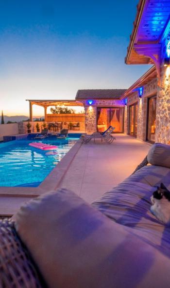 Villamızın doğa manzaralı bahçesinde, havuz, şezlong, salıncak, yemek masası ve barbekü gibi olanaklar bulunmaktadır, böylece misafirlerimiz açık havada keyifli vakit geçirebilirler.