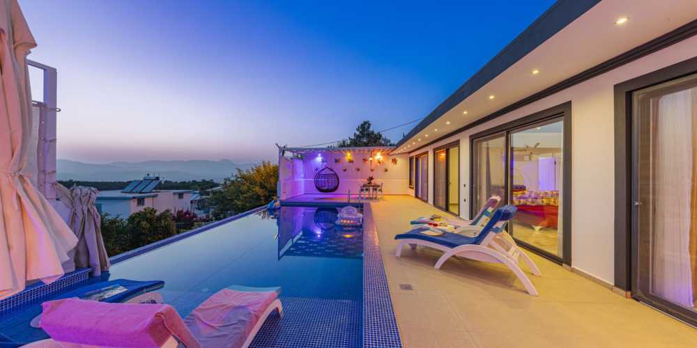 Kalkan Üzümlü’nün sakin doğası içerisinde konumlanan bu özel villa; doğa içinde huzurlu bir atmosfer, korunaklı havuz yapısı ve konforlu yaşam alanlarıyla özellikle muhafazakâr villa ve balayı villa arayan misafirler için öne çıkan kiralık villa alternatiflerinden biridir. Kalkan ve çevresinde villa kiralama planlayan misafirler için hem dinlendirici hem de keyifli bir tatil fırsatı sunmaktadır.