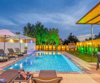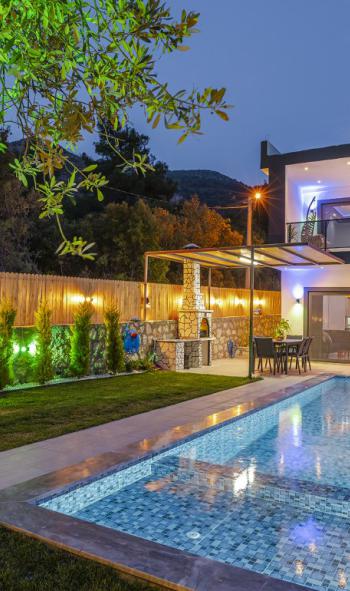 Yeşillik alanı, mangal yeri, çocuklu aileler için çocuk havuzu gibi olanaklara sahip olan villamız size, sessiz ve huzurlu bir tatil vaad etmektedir.