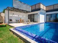 Villanın en dikkat çekici özelliklerinden biri tamamen korunaklı özel havuz alanıdır. Havuz önü yeşil bahçe düzenlemesi ile hem doğal bir ambiyans oluşturulmuş hem de dinlenme alanı konforlu hale getirilmiştir. Şezlong alanı ve açık hava oturma bölümü sayesinde gün boyu keyifli vakit geçirebilirsiniz.