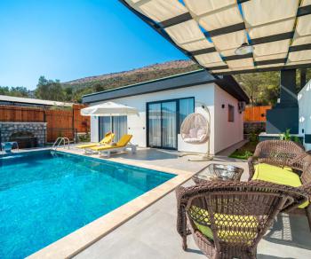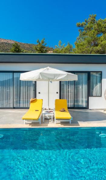 Villanın özel yüzme havuzu, sıcak yaz günlerinde serinlemeniz için mükemmel bir olanak sunar. Havuzun çevresindeki şezlonglar, güneşlenmek ve dinlenmek için idealdir. Ayrıca, villanın geniş terasında akşamüstü çayınızı ya da kahvenizi yudumlayabilir, gün batımının keyfini çıkarabilirsiniz. Doğa manzarası eşliğinde romantik akşam yemekleri için de teras mükemmel bir ortam sunar