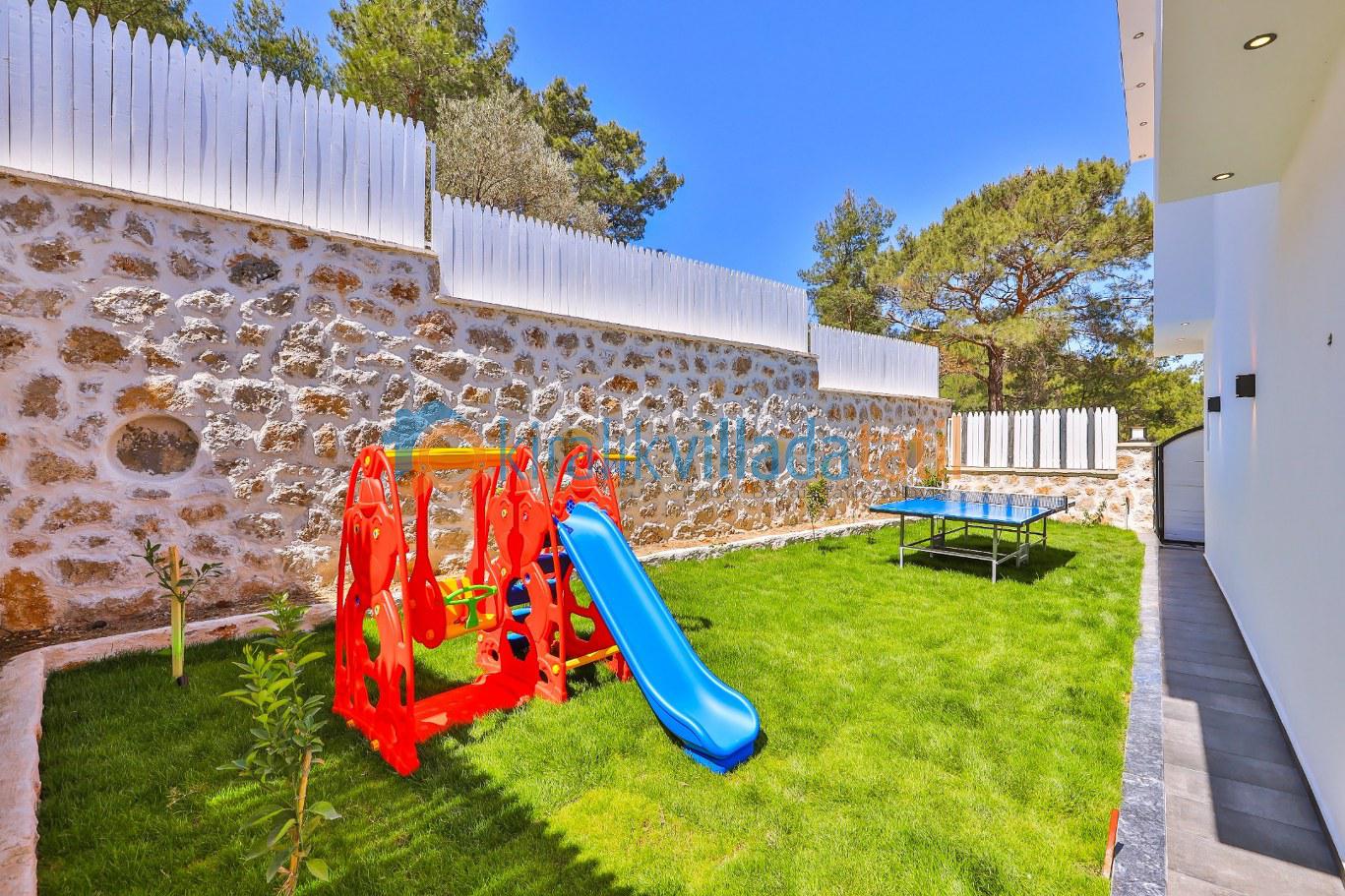 Havuz alanı dışarıdan görünmeyecek şekilde planlandığı için korunaklı villa ve muhafazakâr villa beklentisi olan misafirler gönül rahatlığıyla tatilin keyfini çıkarabilir. Ana yatak odasında yer alan jakuzi, günün yorgunluğunu atmanız için sakin ve konforlu bir atmosfer sunarken, bahçede bulunan masa tenisi ve çocuk oyun alanı hem yetişkinler hem de küçük misafirler için keyifli vakit geçirme imkânı sağlar.