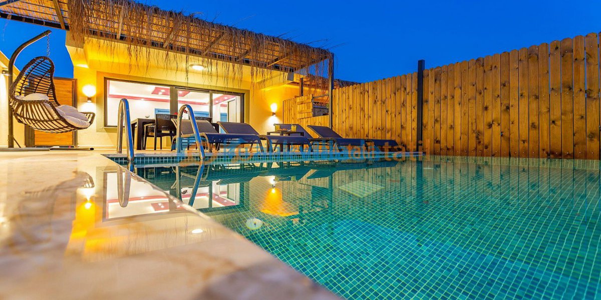 Kalkan Yeşilköy bölgesinde yer alan bu korunaklı villa, muhafazakar villa konsepti ve jakuzili yapısıyla villa kiralama sürecinde hem mahremiyet hem de huzur arayan misafirler için öne çıkan bir kiralık villa alternatifidir.