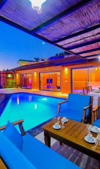 Bu ilan ait Detaylı açıklama ve bilinmesi gereken detaylarKalkan'ın Yeşilköy mevkisinde, ahşap konsepti ve etkileyici mimarisiyle gözleri üzerine çeken bu eşsiz villa, doğayla iç içe bir kaçamak arayanların mükemmel bir seçimidir. Betonlaşmış şehir hayatından uzaklaşmak isteyen misafirlerimizi cezbeden bu villamız, tasarımıyla da dikkat çekmektedir. Muhafazakar ailelerimiz ve balayı çiftleri için özel olarak tasarlanmış olan villa, iki yatak odasıyla dört kişiye kadar konaklama imkanı sunmaktadır. Ebeveyn odasındaki özel jakuzisi, misafirlerimize ekstra bir rahatlama fırsatı sunmaktadır. Havuzun korunaklı olması, mahremiyete önem veren misafirlerimize benzersiz bir tatil deneyimi sunmaktadır.