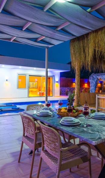 Havuz terası, korunaklı bir tasarıma sahiptir ve dışarıdan tamamen izole edilmiştir, böylece konuklar gizliliklerini koruyarak tatilin tadını çıkarabilirler. Villamız, ailelerin ve çiftlerin bir araya gelerek unutulmaz tatil anıları biriktirmeleri için ideal bir ortam sunmaktadır.