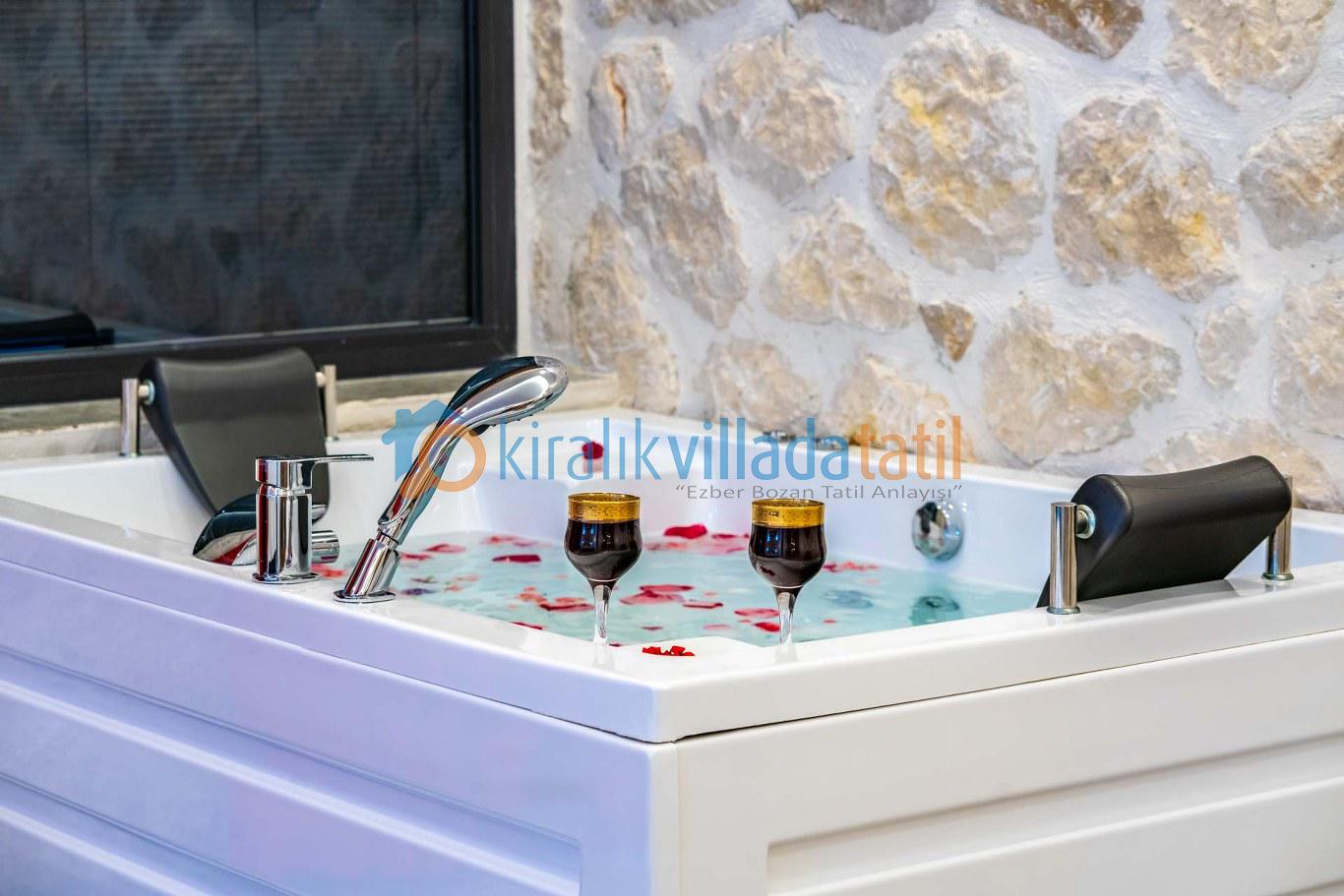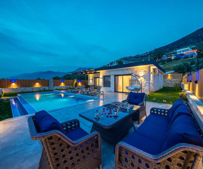Kalkan Yeşilköy’ün huzurlu atmosferinde; doğayla baş başa kalabileceğiniz, günün stresini tamamen geride bırakabileceğiniz bu villa, muhafazakâr tatil anlayışına uygun yapısıyla misafirlerine benzersiz bir konaklama deneyimi sunuyor.