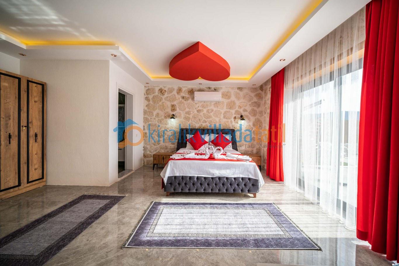 Kalkan’ın doğal güzelliğiyle ünlü Yeşilköy bölgesinde yer alan bu özel tatil evi, hem konumu hem de sunduğu eşsiz manzara ile adeta huzurun ve sakinliğin merkezi niteliğindedir. Kuş seslerinin arasında, doğayla baş başa kalabileceğiniz bu muhafazakâr villa, 4 kişilik kapasitesiyle balayı çiftleri, küçük aileler ve sakin bir tatil arayan tüm misafirler için ideal bir kiralık villa seçeneğidir.