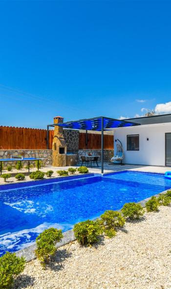 Villamızın havuz terası dışarıdan görünürlüğü engellendiğinden dolayı muhafazakar villa çiftlerimiz içinde uygun nitelikte bir villadır.Villamızda sauna ve hamam bulunmaktadır ayrıca havuzu kısmında ufak bir şelalesi mevcuttur.Balayı villa kategorisinde olan villamızda Tek yatakodası bulunmaktadır.