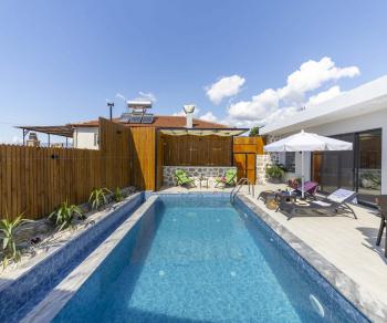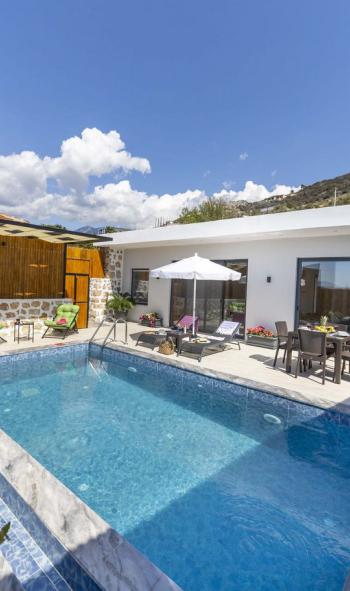 Doğayla iç içe bir konumda bulunan villa, özel yüzme havuzuyla misafirlerine keyifli bir tatil deneyimi sunar. Özellikle balayı çiftleri için ideal bir tercih olan Villamız, mahremiyetine önem veren muhafazakâr misafirlerimiz için de uygun bir tatil ortamı sağlar. Villamızda konakladığınız süre boyunca, her gün ücretsiz olarak sunulan 1 paket servis ile tatilinizin hem lezzetli hem de konforlu geçmesinin keyfini çıkarabilirsiniz.