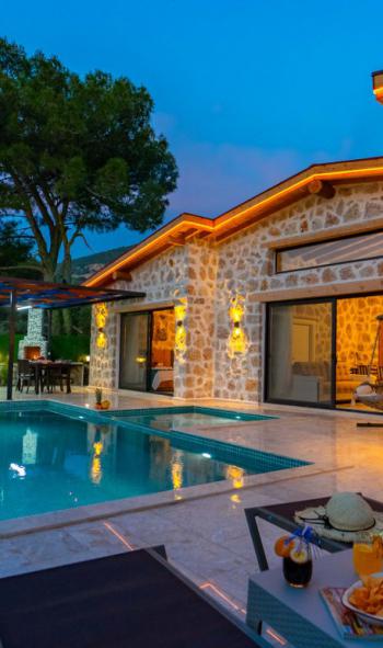 Villamızın mimarisinde taş ve ahşap işçiliği kullanılarak doğal ve estetik bir atmosfer yaratılmıştır. Bu sayede, villada bulunan her köşe sıcak ve davetkar bir atmosfere sahiptir. Özel yüzme havuzu ve havuz terası, korunaklı bir şekilde tasarlanmıştır, bu da özellikle muhafazakar aileler için ideal bir seçenektir. Burada, kendinizi güvende hissederek doğanın tadını çıkarabilir ve özel anlarınızı paylaşabilirsiniz.