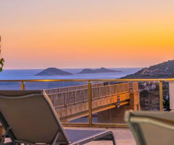 Kalkan’ın kalbinde, Akdeniz’in büyüleyici manzarasına hâkim konumda yer alan bu özel deniz manzaralı villa, 10 kişilik kapasitesiyle geniş aileler ve arkadaş grupları için mükemmel bir konaklama seçeneğidir.