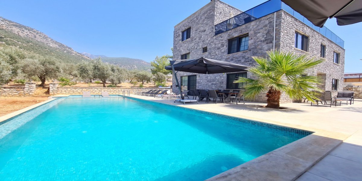 Kalkan Çayköy Mevkiinde 14 Kişilik Korunaklı Tatil Villası