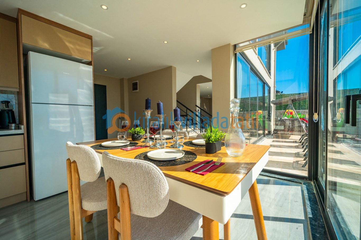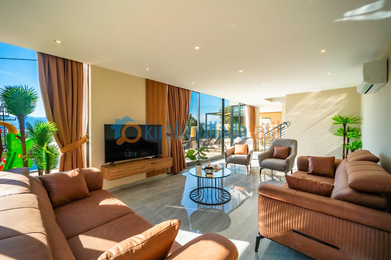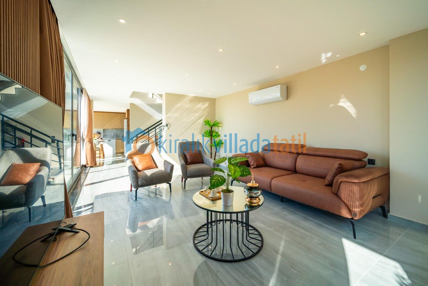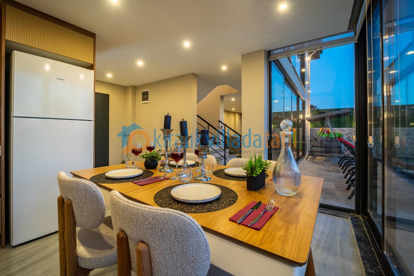Modern ve lüks bir tasarıma sahip olan villa, aynı zamanda, misafirlerin memnuniyeti ve konforu düşünüşerek, modern ve lüks ev eşyaları ile dizayn edilmiştir.